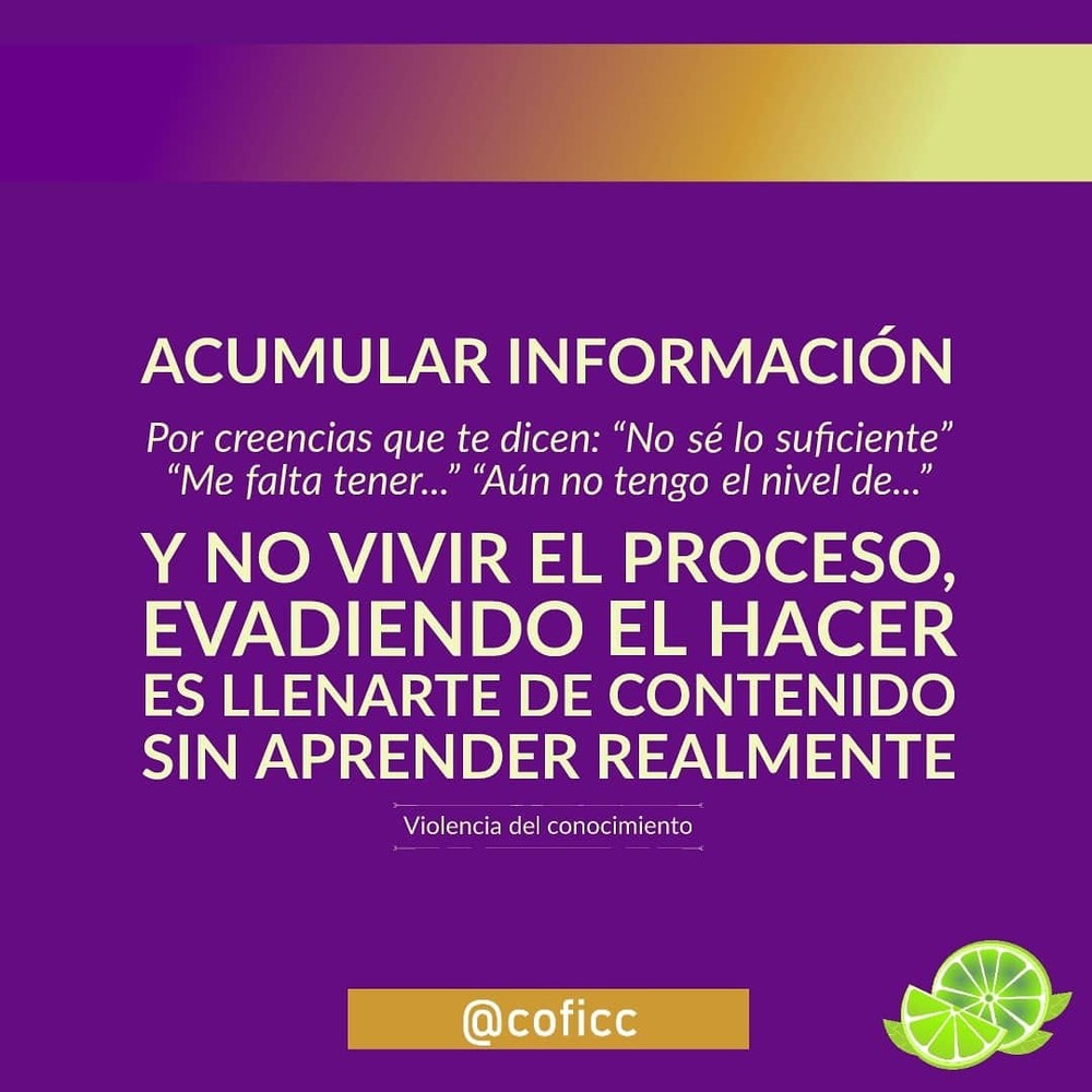 ?? Dedico buena parte de mis recursos (tiempo y dinero) a adquirir información nueva y valiosa y no la llevo a la práctica. Esto ocurre en la búsqueda de llenar el vacío interno del "no sé lo suficiente, todavía me falta", "hasta que no sepa... no voy a...", "estoy estudiando esto..., estoy estudiando aquello...(y hay nula o poca práctica)" convirtiéndose en una de las creencias limitantes que impiden que pongas en acción la información recibida y puedas aprender realmente, repitiéndose el ciclo y reforzando la creencia de que aún no sabes y por lo tanto necesitas seguir llenándote de conocimientos.